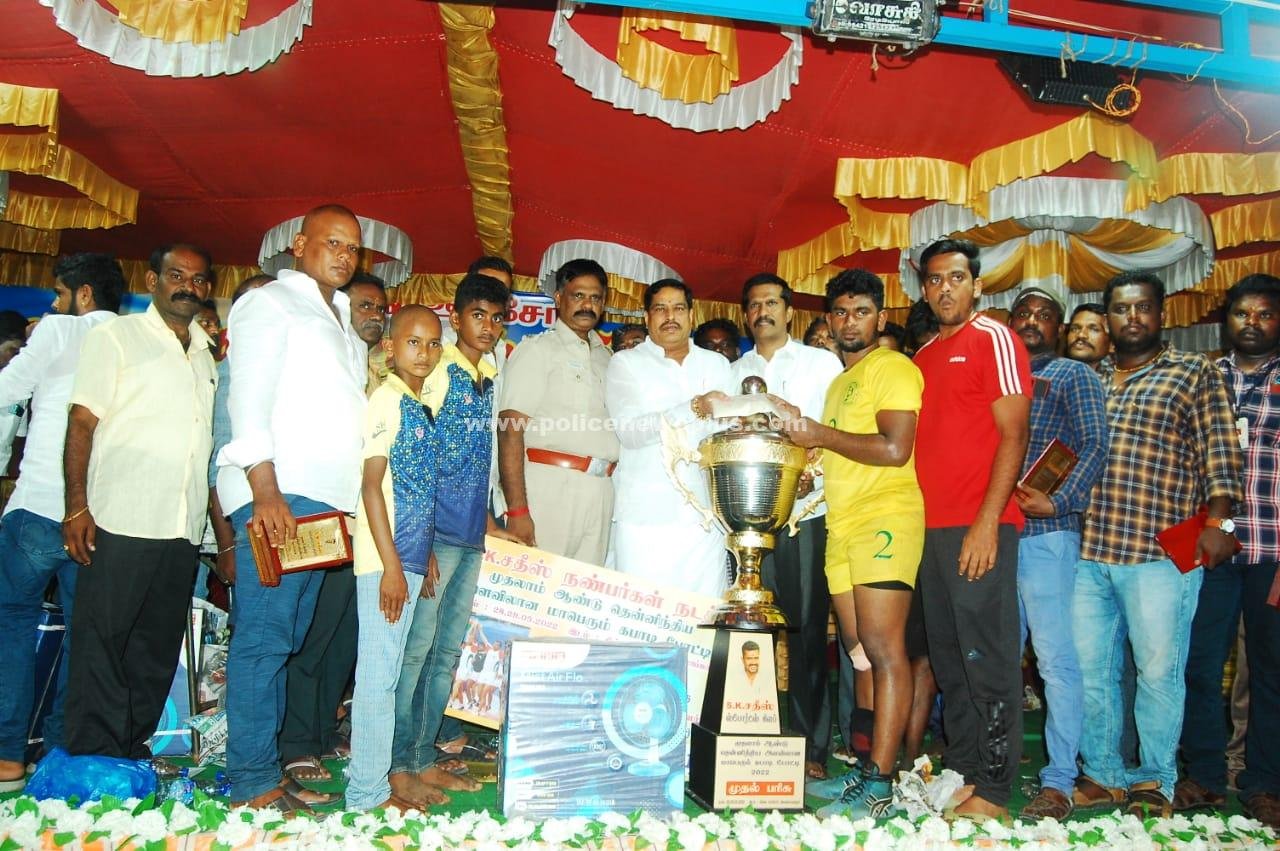 மதுரை : மதுரை மாவட்டம், அலங்காநல்லூர் அருகே, சின்ன ஊர்சேரி கிராமத்தார்கள். ஒத்தவீடு அனைத்து ஊர் நண்பர்கள் சார்பாக, எஸ். கே .சதீஷ் குமார் அவர்கள் முதலாம் ஆண்டு நினைவு தினத்தை முன்னிட்டு, தென்னிந்திய அளவிலான மாபெரும் கபடி போட்டி நடைபெற்றது. மொத்தம் 64 அணிகள் கலந்து கொண்ட நிலையில், முதல் பரிசு கல்லணை அணியும், இரண்டாம் பரிசு ஈரோடு அணியும், மூன்றாம் பரிசு அலங்காநல்லூர் அணி, நான்காவது பரிசு கோவை அணி, இவர்களுக்கான பரிசுகளை , சினிமா நடிகரும், சென்னை தொழிலதிபரும், பாரதிய ஜனதா கட்சியின் பிரமுகருமான மரவபட்டி கே.ஜி. பாண்டியன், பரிசுகளை வழங்கினார்.