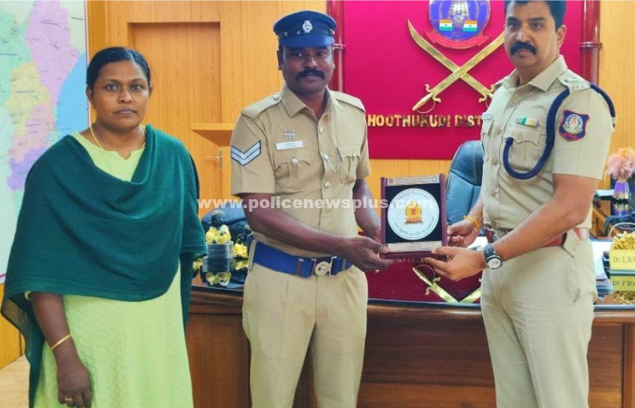 தூத்துக்குடி : தேசிய குற்ற ஆவண காப்பக விருது பெற்ற தூத்துக்குடி மாவட்டம் புதுக்கோட்டை காவல் நிலைய முதல்நிலை காவலருக்கு மாவட்ட காவல் கண்காணிப்பாளர் டாக்டர் எல். பாலாஜி சரவணன் அவர்கள் பாராட்டு. தமிழகத்திலுள்ள அனைத்து காவல் நிலையங்களிலும் குற்றம் மற்றும் குற்றவாளிகளை கண்காணிக்கும் சி.சி.டி.என்.எஸ் (CCTNS) என்ற இணையதள வசதி செய்யப்பட்டுள்ளது. இதன் மூலம் குற்ற வழக்குகளில் ஈடுபட்டவர்கள், காணாமல் போனவர்கள், திருடு போன வாகனங்கள் போன்றவற்றை கண்டுபிடிப்பதற்கு இந்த இணையதளம் ஏதுவாக உள்ளது. மேற்படி இந்த இணையதள பயன்பாடு குறித்து புதுடில்லியில் உள்ள தேசிய குற்ற ஆவண காப்பகம் (National Crime Records Bureau) தமிழகத்தில் உள்ள அனைத்து காவல் நிலையங்களிலும் ஆய்வு நடத்தியது. இந்த ஆய்வில் மேற்படி சி.சி.டி.என்.எஸ். இணையதளத்தை பயன்படுத்தி குற்ற வழக்குகளில் ஈடுபட்டவர்களை கண்டுபிடித்தல், திருட்டு வாகனங்களை கண்டுபிடித்தல், காணாமல் போனவர்களை கண்டுபிடித்தல் உட்பட பல்வேறு வழக்குகளில் சிறப்பாக பணியாற்றியமைக்காக தமிழ்நாடு காவல்துறையில் 3 பேர் தேர்வு செய்யப்பட்டுள்ளனர்.
