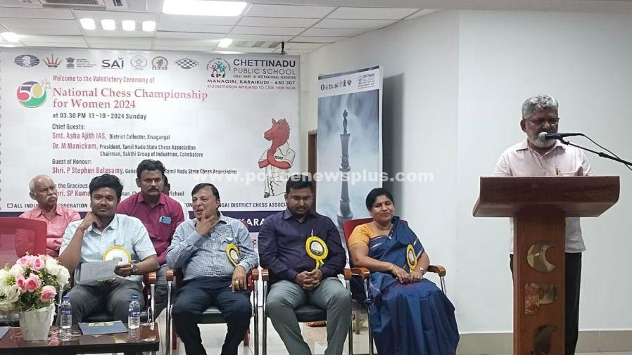 சிவகங்கை : செட்டிநாடு பப்ளிக் பள்ளியில்பத்து தினங்கள் நடைபெற்ற ஐம்பதாவது தேசிய அளவிலான மகளிர் சதுரங்க போட்டி நிறைவு விழா மற்றும் பரிசளிப்பு விழா இன்று மாலை 4 மணி அளவில் செட்டிநாடு பள்ளி வளாகத்தில் துவங்கியது. செட்டிநாடு பப்ளிக் பள்ளி சேர்மன் எஸ்பி குமரேசன் கலந்துகொண்டு ஐம்பதாவது தேசிய மகளிர் சதுரங்க போட்டி குறித்து சிறப்புரை ஆற்றிய போது எடுத்த படம் அருகில் தேவகோட்டை சப் கலெக்டர் ஆயுஸ் வெங்கட், துணை சேர்மன் அருண்குமார், பள்ளி முதல்வர் மீனா குமாரி, தமிழ்நாடு சதுரங்க கழக தலைவர் பாலசாமி உள்ளனர்.
