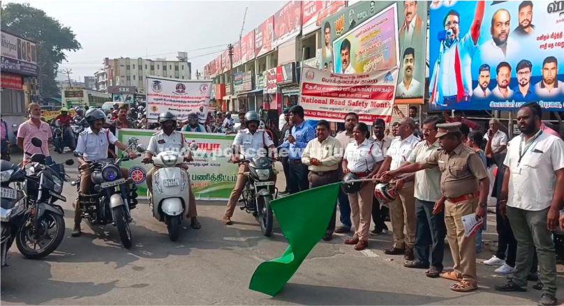 திண்டுக்கல்: திண்டுக்கல் மாவட்டம் பழனியில் வட்டார போக்குவரத்து அலுவலகம் மற்றும் காவல்துறை இணைந்து சாலை போக்குவரத்து விழிப்புணர்வு பேரணி நடைபெற்றது. இதில் ஏராளமான கல்லூரி மாணவ, மாணவிகள் கலந்து கொண்டு விழிப்புணர்வை ஏற்படுத்தினர்.