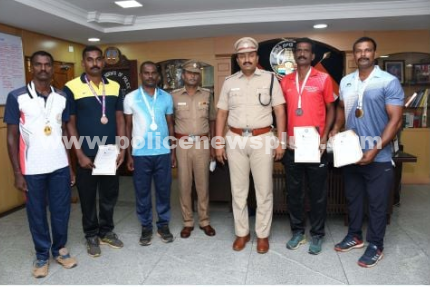 மதுரை : 42 வது தேசிய மாஸ்டர், சாம்பியன்ஷிப் போட்டிகள், சென்னை நேரு ஸ்டேடியத்தில் நடைபெற்றது. இதில் நாடு முழுவதும் இருந்து, பல வீரர் வீராங்கனைகள் கலந்து கொண்டனர். இப்போட்டியில் மதுரை மாவட்ட காவல்துறை சார்பில், கலந்துகொண்ட. திரு.சிதம்பரம், அவர்கள் 400 மீட்டர் தடை தாண்டும் ஓட்டத்தில் தங்கப் பதக்கமும், தடை தாண்டி ஓட்டத்தில் வெள்ளிப் பதக்கமும் பெற்றார். அதேபோல் திரு .முருகேசன் அவர்கள் நீளம் தாண்டுதல் பிரிவில், வெண்கலப் பதக்கம் பெற்றார். மேலும், திரு.ராஜா அவர்கள் ஈட்டி எறிதல், போட்டியில் தங்கப் பதக்கமும், வட்டு எறிதல் போட்டியில், வெண்கல பதக்கமும் பெற்றார்.