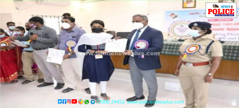இராணிப்பேட்டை: இராணிப்பேட்டை மாவட்ட ஆட்சியர் அலுவலகத்தில் தேசிய வாக்காளர் தினத்தை முன்னிட்டு 100% வாக்களிப்பதை ஊக்குவிக்கும் விதமாக மாவட்டத்தில் உள்ள அனைத்து பள்ளி மற்றும் கல்லூரி மாணவர்களுக்கு இடையே பல்வேறு போட்டிகள் நடத்தப்பட்டு வெற்றி பெற்ற மாணவர்களுக்கு பரிசுகள் மற்றும் பாராட்டு சான்றிதழ்களை மாவட்ட ஆட்சியர் திரு.பாஸ்கர பாண்டியன்,இ. ஆ. ப., அவர்கள் வழங்கினார். மாவட்ட காவல் கண்காணிப்பாளர் மரு.திருமதி.தீபா சத்யன், இ.கா. ப., அவர்கள் இவ்விழாவில் கலந்து கொண்டார்.