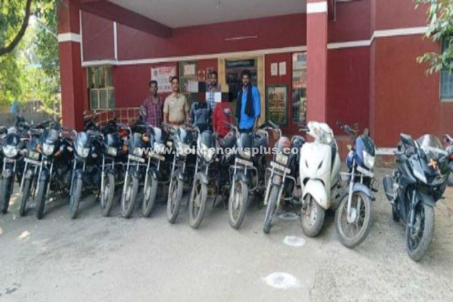 மதுரை : மதுரை மாவட்ட காவல் கண்காணிப்பாளர் அவர்கள், மதுரை மாவட்டத்தில் திருட்டு வழிப்பறி போன்ற குற்ற செயலில் ஈடுபடுபவர்கள் மீது கடுமையான நடவடிக்கை எடுக்க உத்தரவிட்டுள்ளார்கள். மேலும் திருட்டு வழிப்பறி போன்ற குற்ற செயலில் ஈடுபடுபவர்களை கண்டறிந்து நடவடிக்கைகள் மேற்கொள்ள தனிப்படைகள் அமைக்கப்பட்டு, தீவிர நடவடிக்கை மேற்கொள்ளப்பட்டு வந்தது. இந்நிலையில் கடந்த 30.09.2022 ஆம் தேதி முதல் தற்போது வரை மதுரை மாவட்டம் திருமங்கலம் உட்கோட்டம் திருமங்கலம் நகர் காவல் நிலையத்தில் இருசக்கர வாகனங்கள் திருடு போனது சம்பந்தமாக பல்வேறு வழக்குகள் பதிவு செய்யப்பட்டு விசாரணையில் இருந்து வருகிறது. 24.11.2022 ம் தேதி மேற்படி திருட்டு வழக்குகளில் ஈடுபட்ட இரண்டு நபர்களை காவல் துறையினால் கைது செய்யப்பட்டு, அவர்களிடமிருந்து 12 இருசக்கர வாகனங்கள் பறிமுதல் செய்யப்பட்டு மேற்படி வழக்கின் சம்பந்தப்பட்ட நபர்கள் மீது மேல் நடவடிக்கை எடுக்கப்பட்டது.