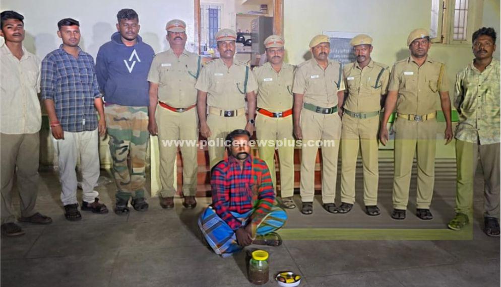 திண்டுக்கல்: திண்டுக்கல் மாவட்டம், ஒட்டன்சத்திரம் வனசரகம் சத்திரப்பட்டி பிரிவு, புதூர் கிராமத்தில் வனவிலங்குகளை வேட்டையாட நாட்டு வெடிகுண்டுகளை (அவுட்காய்கள்) பதுக்கி வைத்திருப்பதாக வனத்துறையினருக்கு கிடைத்த ரகசிய தகவலின் அடிப்படையில் வனத்துறையினர் திடீர் சோதனை மேற்கொண்ட போது கோட்டூர் கிராமம் கருப்பண்ணன் மகன் செல்வராஜ்(35). என்பவர் வனவிலங்குகளை வேட்டையாடுவதற்காக நாட்டு வெடிகுண்டுகளை (அவுட்காய்கள்) பதுக்கி வைத்திருப்பது தெரிய வந்ததை தொடர்ந்து வனத்துறையினர் செல்வராஜை கைது செய்து அவரிடமிருந்து நாட்டு வெடிகுண்டுகளை (அவுட்காய்களை) பறிமுதல் செய்து நீதிமன்றத்தில் ஆஜர் படுத்தி சிறையில் அடைத்தனர்.