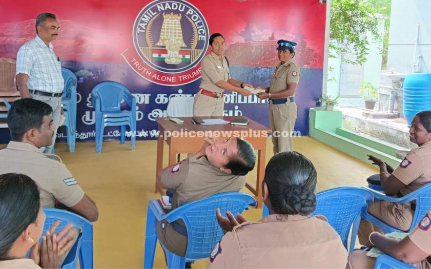 திண்டுக்கல்: திண்டுக்கல் மாவட்டம் வடமதுரை அனைத்து மகளிர் காவல் நிலையத்தில் குற்ற வழக்கின் சாட்சிகளை நீதிமன்றத்தில் ஆஜர்படுத்தி குற்றவாளிகளுக்கு தண்டனை பெற்றுக் கொடுத்தமைக்கு நீதிமன்ற காவலர்களை பாராட்டி வேடசந்தூர் டி.எஸ்.பி. பண வெகுமதி வழங்கி கௌரவித்தார்.