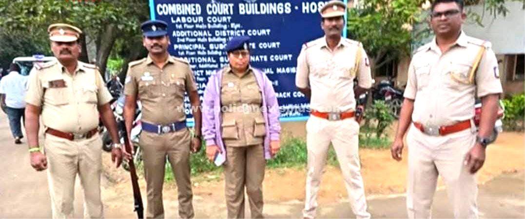 கிருஷ்ணகிரி: கிருஷ்ணகிரி மாவட்டம் ஒசூர் நீதிமன்ற வளாகத்தில் துப்பாக்கி ஏந்திய போலீசார் பாதுகாப்பு. நெல்லை நீதிமன்றக் கொலை மற்றும் ஓசூரில் வழக்கறிஞர் தாக்குதலுக்கு பின்னர், உயர் நீதிமன்ற உத்தரவின் பேரில், ஓசூர் நீதிமன்ற வளாகத்தில் துப்பாக்கி ஏந்திய காவல் துறையினர் பாதுகாப்பில் ஈடுபட்டனர். டிஜிபி சங்கர் ஜிவால் அனைத்து மாவட்டங்களில் பாதுகாப்பை பலப்படுத்த உத்தரவிட்டார். அதன்படி காவல் துறையினர் சோதனை செய்து மட்டுமே நீதிமன்ற வளாகத்துக்குள் அனுமதி வழங்கினர்.