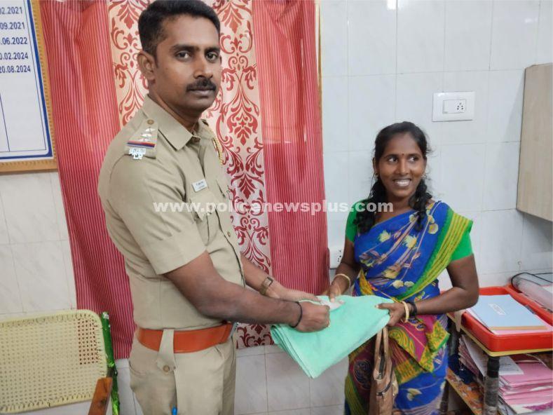 சிவகங்கை: சிவகங்கை மாவட்டம், காளையார்கோவில் காவல் நிலைய எல்லைக்குட்பட்ட கல்லத்தி கிராமம் ராஜேஸ்வரி(65), க.பெ.ஆறுமுகம், என்பவர் இன்று காளையார்கோவில் வாரச்சந்தையில் காய்கறி வாங்கும்போது தனது கட்டைபையை மாற்றி எடுத்து சென்றதாக காளையார்கோவில் காவல் நிலையத்தில் தகவல் தெரிவித்தார். இது சம்பந்தமாக காளையார்கோவில் காவல் நிலைய எல்லைக்குட்பட்ட நெடுவத்தாவு கிராமத்தை சேர்ந்த நித்தியா(30). என்பவர் காளையார்கோவில் வாரச்சந்தையில் கட்டைப்பையை மாற்றி எடுத்து சென்றதாக காளையார்கோவில் காவல் நிலையத்தில் ஒப்படைத்தார். மேற்படி கட்டைப்பையை கல்லத்தியை சேர்ந்த ராஜேஸ்வரியை என்பவரை காவல் நிலையம் வர வழைத்து காணாமல் போன பணம் ரூ.50,000/- மற்றும் 02 பவுன் தங்க செயினை உரியவரிடம் ஒப்படைத்தனர். மேற்படி நித்தியாவின் நேர்மையை பாராட்டி காயைார்கோவில் காவல் ஆய்வாளர் முத்துப்பாண்டி, அவர்கள் பொன்னாடை அணிவித்து வாழ்த்துக்களை தெரிவித்து வெகுமதி வழங்கினார்.