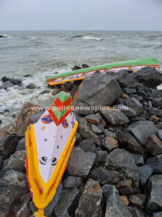 திருவள்ளூர்: திருவள்ளூர் மாவட்டம் பழவேற்காடு சுற்றியுள்ள 30க்கும் மேற்பட்ட மீனவ கிராம மக்களில் ஒரு தரப்பினர் பழவேற்காடு ஏரியிலும், மற்றொரு தரப்பினர் கடலிலும் மீனவர்கள் மீன்பிடி தொழில் செய்து வருகின்றனர். வைரவன் குப்பத்தை சேர்ந்த இளங்கோ என்ற மீனவர் மேலும் இருவருடன் தமது படகில் கடலுக்கு மீன் பிடிக்க இன்று அதிகாலை புறப்பட்டு சென்றார். பழவேற்காடு ஏரியிலிருந்து முகத்துவாரம் வழியாக கடலுக்கு செல்ல முயன்ற போது கடல் சீற்றம் காரணமாக அலையில் சிக்கிய படகு கவிழ்ந்தது. மேலும் அங்கு முகத்துவாரப் பணிகளுக்காக கொட்டப்பட்டிருந்த கற்கள் மீது மோதியதில் படகு இரண்டாக உடைந்தது. படகிலிருந்த மீன்பிடி வலைகளும் கடல் அலையில் அடித்து செல்லப்பட்டன. படகு கவிழ்ந்ததில் மீன்பிடிக்கச் சென்ற இளங்கோ, ஜானகிராமன், சுந்தர் ஆகிய மூன்று மீனவர்கள் அதிர்ஷ்டவசமாக உயிர்த்தப்பினர். இந்த சம்பவம் தொடர்பாக அளிக்கப்பட்ட தகவலின் பேரில் மீன்வளத்துறை அதிகாரிகள் மற்றும் திருப்பாலைவனம் காவல்துறையினர் விசாரணை நடத்தி வருகின்றனர். கடலுக்கு மீன் பிடிக்க சென்ற படகு கடல் சீற்றம் காரணமாக கவிழ்ந்து கற்களில் மோதி இரண்டாக உடைந்த சம்பவம் பரபரப்பை ஏற்படுத்தியுள்ளது.