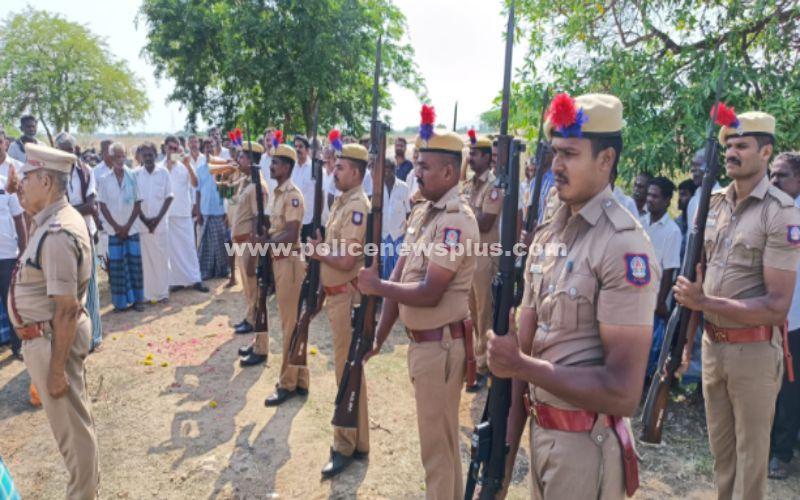 திருச்சி மாவட்டத்தில் உளவுத்துறை காவல் ஆய்வாளராக பணியாற்றிய சிவாவிற்கு அவர்களது ஊர் வழக்கப்படி எரியூட்டும் மயானத்திற்கு கொண்டு செல்லப்பட்டு, அங்கு மதுரை மாவட்ட ஆயுதப்படை உதவி ஆய்வாளர் சீனி தலைமையிலான போலீசார் தமிழக காவல்துறை சார்பில் 21 குண்டுகள் முழங்க தமிழக அரசு சார்பில் இறுதி அஞ்சலி செலுத்தினர். இதனைத் தொடர்ந்து, அவரது மகன்கள் அவருக்கு ,