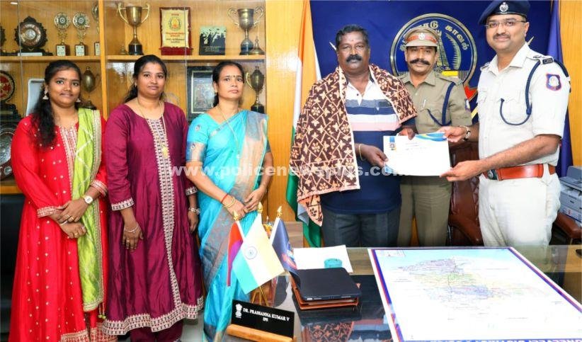 திருநெல்வேலி: திருநெல்வேலி மாவட்ட காவல் துறையில் பணிபுரிந்து ஓய்வு பெற்ற உதவி ஆய்வாளர், முருகன், சிறப்பு உதவி ஆய்வாளர் சந்திரன் மற்றும் விருப்ப ஓய்வில் செல்லும் தலைமை காவலர், செல்வேந்திரன் ஆகிய மூவரும் சிறப்பான முறையில் பணியாற்றியதை திருநெல்வேலி பாராட்டி மாவட்ட காவல் கண்காணிப்பாளர், மரு.V. பிரசண்ண குமார், இ.கா.ப., சான்றிதழ் வழங்கி தனது வாழ்த்துக்களை தெரிவித்துக் கொண்டார். இந்நிகழ்வின் போது திருநெல்வேலி மாவட்ட கூடுதல் காவல் கண்காணிப்பாளர் M.சண்முகம் (CWC) உடனிருந்தார்.