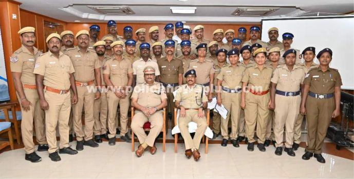 மதுரை: தமிழக அரசின் ஆணைப்படி, கடந்த 2009-ஆம் ஆண்டு தமிழக காவல் துறையில் இரண்டாம் நிலை காவலராக பணிக்கு சேர்ந்து 15 ஆண்டுகள் பணி நிறைவு பெற்றவர்களுக்கு தலைமை காவலர்களாக பதவி உயர்வு அளிக்க ஆணை பிறப்பிக்கப்பட்டது. அதன்படி , மதுரை மாநகரில் சட்டம் & ஒழுங்கு, போக்குவரத்து காவல் பிரிவு, ஆயுதப்படை மற்றும் சிறப்பு பிரிவுகளில் 15 ஆண்டுகள் பணிபுரிந்த 45 முதல்நிலை காவலர்கள், தலைமை காவலர்களாக பதவி உயர்வு பெற்றனர். பதவி உயர்வு பெற்றவர்களை மதுரை மாநகர காவல் ஆணையர் டாக்டர் லோகநாதன், நேரில் அழைத்து நற்பணி சான்றிதழ் வழங்கி, வரும் காலங்களில் சிறப்பாக பணிபுரிந்து தமிழ்நாடு காவல்துறைக்கு பெருமை சேர்க்க வேண்டுமென தனது பாராட்டுக்களையும், வாழ்த்துக்களையும் தெரிவித்தார்.