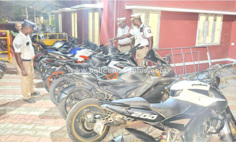 அப்போது, பதிவு எண் இல்லாதது, ஓட்டுநர் உரிமம் இல்லாதது, சைலன்சர் மாற்றம் செய்யப்பட்டது, ஆபத்தான முறையில் வாகனம் ஓட்டியது, குடி போதையில் வாகனம் ஓட்டியது ஆகிய பிரிவுகளின் கீழ் வழக்கு பதிவு செய்து அபராதம் விதித்து வாகனங்கள் பறிமுதல் செய்யப்பட்டது. மேலும் (31.12.2025) அன்று 145000/– ரூபாய் அபராதம் விதிக்கப்பட்டுள்ளது.