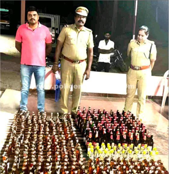 கிருஷ்ணகிரி : கிருஷ்ணகிரி மாவட்டம் தேன்கனிக்கோட்டை காவல் நிலைய எல்லைக்கு உட்பட்ட பழையூர் கிராமத்தில் மது பாட்டில் பதுக்கி விற்பனை செய்வதாக போலீசாருக்கு தகவல் கிடைத்தது. அதன் பேரில் அந்தப் பகுதியில் உள்ள கௌரி (55). என்பவரது வீட்டில் சோதனை செய்தனர். அப்போது அங்கு விற்பனைக்காக பதுக்கி வைத்திருந்த சுமார் 505 மதுபான பாட்டில்களை தேன்கனிக்கோட்டை போலீசார் பறிமுதல் செய்தனர். மேலும் தலைமறைவான கௌவி மற்றும் அவரது மகன் ரஃபி(32). ஆகியோரை போலீசார் தேடி வருகின்றனர்.