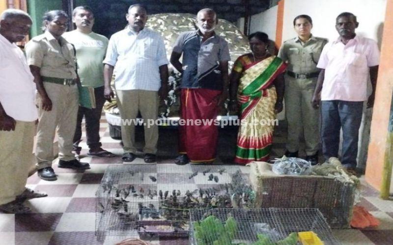 திண்டுக்கல் : திண்டுக்கல் மாவட்டம், பழனி வனப்பகுதியில், வனப்பகுதியினர் கண்காணிப்பு பணியில் ஈடுபட்டனர். அப்பொழுது பழனி ஆவணி மூல வீதியைச் சேர்ந்த மாரிக்கண்ணு வயது (50), பார்வதி வயது (40), ஆகிய இருவரும் பறவைகளை பிடித்து, வீட்டில் பதுக்கி வைத்து விற்பனை செய்வது தெரிய வந்தது. இதையொட்டி வனத்துறையினர் அவரது வீடுகளில் நேரடியாக சோதனை நடத்தினர். அப்பொழுது அவர் வீட்டில் 40 பச்சை கிளிகளும், 70-க்கும் மேற்பட்ட குருவி இனத்தைச் சேர்ந்த முனியாஸ், பிஞ்சஸ், பறவைகள் இருப்பது தெரிய வந்தது. உடனே அவற்றை வனத்துறையினர் கைப்பற்றி வனப்பகுதியில் பறக்கவிட்டனர். பறவைகளை சட்ட விரோதமாக பிடித்த மாரிகண்ணு, பார்வதி, ஆகிய இருவருக்கும், தலா 15,000 வீதம் 30000 அபராதம் விதித்தனர்.