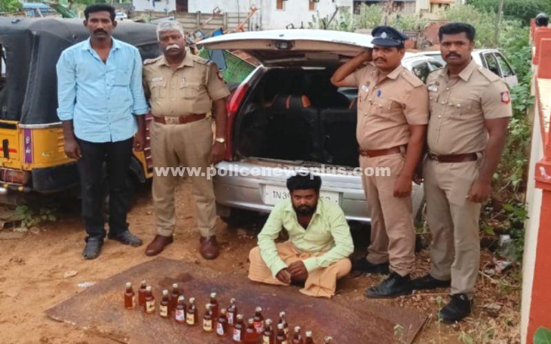 தஞ்சாவூர் : தஞ்சாவூர் மாவட்டம், பாபநாசம் காவல்துறை கண்காணிப்பாளர் திருமதி .பூரணி அவர்களுக்கு அய்யம்பேட்டை சரக்கத்தில் அரசு அனுமதியின்றி மது பாட்டில்களை காரில் வைத்து வியாபாரம் செய்வதாக கிடைத்த ரகசிய தகவல் படி அந்த நபரை இனம் கண்டு கைது செய்ய உத்தரவிட்டார். அதனை தொடர்ந்து அய்யம்பேட்டை காவல் ஆய்வாளர் திரு.வனிதா மற்றும் அய்யம்பேட்டை காவல் நிலைய உதவி ஆய்வாளர் ராஜேஷ் குமார் மற்றும் சிறப்பு உதவி ஆய்வாளர் திரு.முருகதாஸ், ஆகியோர்கள் தீவிர வாகன சோதனை மேற்கொண்டு வந்தார்கள்.