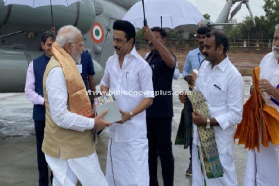 திண்டுக்கல் : திண்டுக்கலுக்கு வருகை தந்த மாண்புமிகு பாரத பிரதமர் திரு.நரேந்திர மோடியை அவர்களை ,மேதகு ஆளுநர் திரு. ஆர். என். ரவி அவர்களும் ,மாண்புமிகு தமிழ்நாட்டின் முதலமைச்சர் திரு.ஸ்டாலின், அவர்களும், மாண்புமிகு மத்திய இணையமைச்சர் டாக்டர். எல். முருகன் அவர்களும் மற்றும் தமிழ்நாட்டின் மாநில அமைச்சர் மாண்புமிகு நீர்வளத் துறை அமைச்சர் திரு. துரைமுருகன் அவர்களும்,பொதுப்பணித்துறை அமைச்சர் திரு.இ.வ.வேலு அவர்களும்,மண்ணுல கூட்டுறவுத்துறை அமைச்சரும் மாவட்ட கழக செயலாளருமான திரு.ஐ.பெரியசாமி அவர்களும்,மாண்புமிகு வருவாய்த்துறை அமைச்சர் திரு.கே எஸ். ஆர் .ராமச்சந்திரன் அவர்களும்,மாண்புமிகு ஊரக வளர்ச்சி துறை அமைச்சரும் மாவட்ட செயலாளருமான கே.ஆர். பெரிய கருப்பன் அவர்களும் மாண்புமிகு சட்டத்துறை அமைச்சர் எஸ். ரகுபதி அவர்களும் , விளையாட்டு துறை அமைச்சர் மாண்புமிகு மெய்ய நாதன் அவர்களும்,பாரதி ஜனதா கட்சியின் தமிழ்நாட்டின் மாநில தலைவர் அண்ணாமலை ஐபிஎஸ் அவர்களும் மற்றும் சட்ட ஒழுங்கு கூடுதல் தலைமை காவல் இயக்குனர் உயர் திரு. தாமரைக்கண்ணன் ஐபிஎஸ் அவர்களும், தென் மண்டல ஐ.ஜி திரு.அஸ்ரா கார்க் அவர்களும்,திண்டுக்கல் சரகம் டிஐஜி எம்.எஸ் திரு..முத்துசாமி ஐ.பி.எஸ் அவர்களும்,ராமநாதபுரம் சரகம் டி.ஐ .ஜி மயில்வாகனன் ஐ.பி.எஸ் அவர்களும் திண்டுக்கல் மாவட்ட ஆட்சியர் எஸ். திரு.விசாகன் ஐ.ஏ.எஸ் அவர்களும் திண்டுக்கல் மாவட்ட காவல் கண்காணிப்பாளர் திரு.பாஸ்கர் ஐ.பி.எஸ் அவர்கள் ஆகியோர் வரவேற்றனர்.