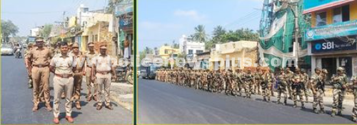 தஞ்சாவூர்: தஞ்சாவூர் மாவட்டத்தில் மாவட்ட காவல் கண்காணிப்பாளர் அவர்கள் உத்தரவின் படி, வல்லம் மற்றும் திருவிடைமருதூர் ஆகிய உட்கோட்ட துணைக்காவல் கண்காணிப்பாளர்கள் தலைமையில் காவல் ஆய்வாளர்கள், காவல் உதவி ஆய்வாளர்கள், காவலர்கள் மற்றும் 200-க்கும் மேற்பட்ட பாதுகாப்பு படையினருடன் பாராளுமன்ற தேர்தலை முன்னிட்டு இன்று தேர்தல் பாதுகாப்பு ஒத்திகை நடத்தப்பட்டது