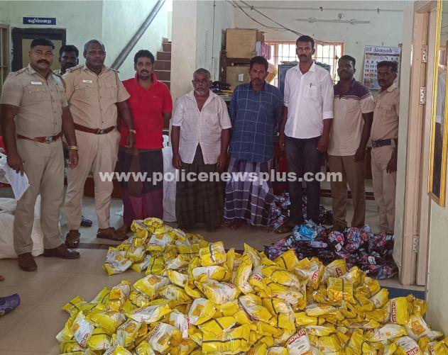 திருப்பாலைக்குடிஇந்து – மறவர் என்பவர் கொடுப்பதாக கூறியதன் பேரில் மேற்படி நபரின் வீட்டையும் , கடையையும் சோதனை செய்ததில் வீட்டின் உள் அறையில்க ணேஷ் புகையிலை 12 மூட்டை (710 பெரிய பாக்கெட் ) – 159.7 கிலோ கூலிப் புகையிலை 04 மூட்டை ( 269 பாக்கெட் ) – 27.1 கிலோV1 புகையிலை 01 மூட்டை (190 பாக்கெட் ) 5.7 கிலோவிமல் புகையிலை 01 மூட்டை (135 பாக்கெட் ) 10.1 கிலோ இரண்டு இலட்சம் மதிப்புள்ள மொத்தம் 202.6 கிலோ புகையிலை வைத்துள்ளவரை பிடித்து நிலையம் கொண்டுவரப்பட்டது. என்ற விபரம் பணிந்து தெரிவித்துக் கொள்கிறேன்