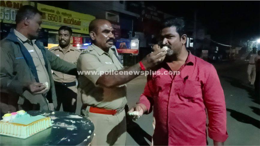 காவல் துறையினர் வாகன ஓட்டிகளை வழிமறித்து கேக் வழங்கியது வாகன ஓட்டிகள் வாழ்த்து சொல்லி நன்றி தெரிவித்து பாராட்டினர்.