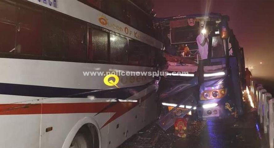 சிவகங்கை : இன்று அதிகாலை (டிசம்பர் 18) சென்னையில் இருந்து திருப்பத்தூர் நோக்கி வந்த சொகுசு பேருந்தும் விளாத்திகுளத்தில் இருந்து மேல்மருவத்தூர் சென்ற சுற்றுலா பேருந்தும் நேருக்கு நேர் மோதிக்கொண்ட விபத்தில் 21 பேர் படுகாயம் அடைந்துள்ளனர். இதில் உதவி டிரைவர் ஒருவருக்கு கை துண்டானது. படுகாயம் அடைந்தவர்கள் திருப்பத்தூர் அரசு மருத்துவமனைக்கு உடனடியாக அனுமதிக்கப்பட்டு சிகிச்சை அளிக்கப்பட்டு வருகிறது.