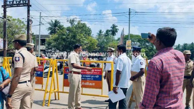 திருவாரூர் : திருவாரூர் பழைய பேருந்து நிலைய பகுதியில் நகராட்சிக்கு சொந்தமான கடைகள் இடிக்கப்பட்டு புதிய கடைகள் கட்டும் பணி நடைபெற்று வருவதால் பொதுமக்கள் மற்றும் போக்குவரத்திற்கு இடையூறு ஏற்பது விடுவதை தடுக்கும் வகையில் திருவாரூர் மாவட்ட காவல் கண்காணிப்பாளர் எஸ். ஜெயக்குமார் எம். எஸ். சி அவர்கள் திருவாரூர் நகர காவல் ஆய்வாளர் மற்றும் போக்குவரத்து உதவி ஆய்வாளர் ஆகியோருடன் திருவாரூர் நகர் முழுவதும் நடந்து சென்று முழுமையாக ஆய்வு செய்து போக்குவரத்து மாற்றம் செய்வது தொடர்பாக ஆலோசனை செய்தார். அப்போது திருவாரூர் நகர காவல் ஆய்வாளர் மோகன் மற்றும் போக்குவரத்து உதவி ஆய்வாளர் வைத்தியநாதன் ஆகியோர் உடன் இருந்தனர்.