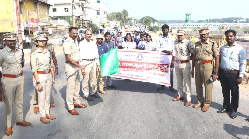 கடலூர்: கடலூர் மாவட்ட காவல் கண்காணிப்பாளர் திரு. S. ஜெயக்குமார் IPS அவர்கள் கொடி அசைத்து துவக்கி வைத்தார். பின்னர் பேரணியில் பங்கேற்று, வாகன ஓட்டுநர்கள் மற்றும் பொதுமக்களுக்கு விழிப்புணர்வு துண்டு பிரசுரங்கள் வழங்கினார், தலைக்கவசம் அணியாமல் வந்த வாகன ஓட்டிகளுக்கு காவல் கண்காணிப்பாளர் அவர்கள் முன்னிலையில் பள்ளி மாணவிகள் தலைக்கவசம் அணிவித்து விழிப்புணர்வு ஏற்படுத்தினார்கள். பள்ளி மாணவ, மாணவிகள் மற்றும் காவல்துறை அதிகாரிகள் முன்னிலையில் விழிப்புணர்வு உறுதிமொழி மேற்கொண்டனர். இந்நிகழ்ச்சியில் கூடுதல் காவல் கண்காணிப்பாளர்கள் திரு. N. கோடீஸ்வரன், திரு. V. ரகுபதி, துணை காவல் கண்காணிப்பாளர்கள் திரு. S. தமிழ்இனியன், திருமதி. A. மனிஷா, திரு. P. அப்பாண்டைராஜ், திரு. S. சரவணகுமார் (பயிற்சி), காவல் ஆய்வாளர்கள் திரு. சந்துரு, திரு. அமர்நாத், உதவி ஆய்வாளர் திரு. பிரசன்னா மற்றும் காவலர்கள் கலந்து கொண்டனர்.