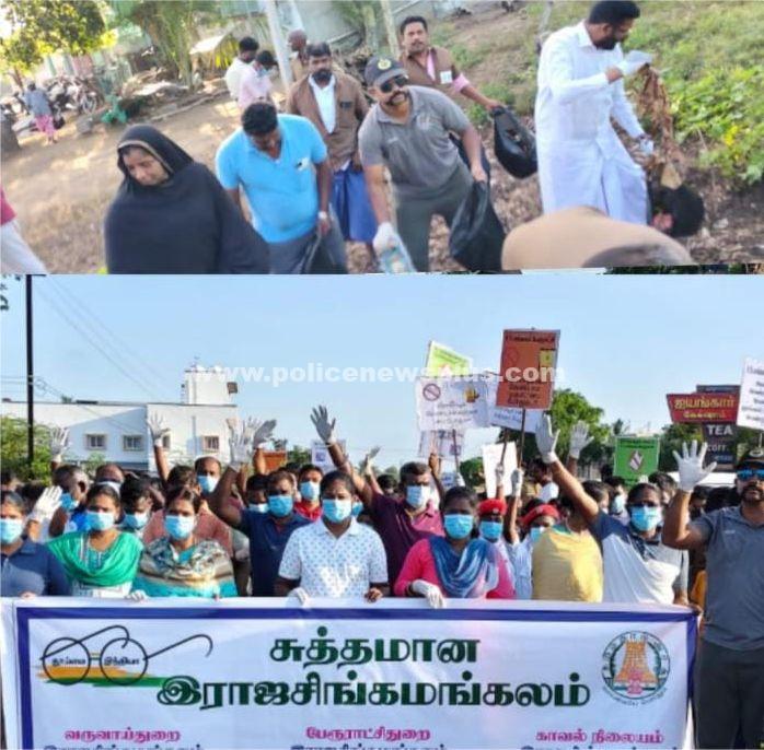 இராமநாதபுரம்: இராமநாதபுரம் மாவட்டம் இராஜசிங்க மங்கலத்தில் தூய்மையான இராஜசிங்கமங்கலம் என்ற தலைப்பில் இன்று அரசு அதிகாரிகள் மாணவ செல்வங்கள் பேரூராட்சி கவுன்சிலர்கள் பேரூராட்சி ஊழியர்கள் தூய்மைபணியாளர்கள் தன்னார்வலர்கள் மற்றும் ஆட்டோ ஓட்டுநர்கள் வருவாய்த் துறை அதிகாரிகள் இதை ஏற்பாடு செய்த ஆர் எஸ் மங்கலம் காவல்துறை அனைத்து அதிகாரிகள் மற்றும் காவல்துறை சார்பு ஆய்வாளர் சைபுல் ஹிஷாம் மற்றும் A S P தனுஸ் குமார் அவர்கள் மற்றும் தாசில்தார் வரதராஜன் அவர்கள் அனைவரும் கலந்து கொண்ட தூய்மையான இராஜசிங்கமங்கலம் என்ற தலைப்பில் யூனியன் அலுவலகம் அருகில் தொடங்கப்பட்ட சுத்தபடுத்துதல் நிகழ்வு சுமார் 3கிலோ மீட்டர் நடந்து குப்பைகளை சுத்தம் செய்யப்பட்டு மக்களுக்கு விழிப்புணர்வு ஏற்படுத்தப்பட்டது.