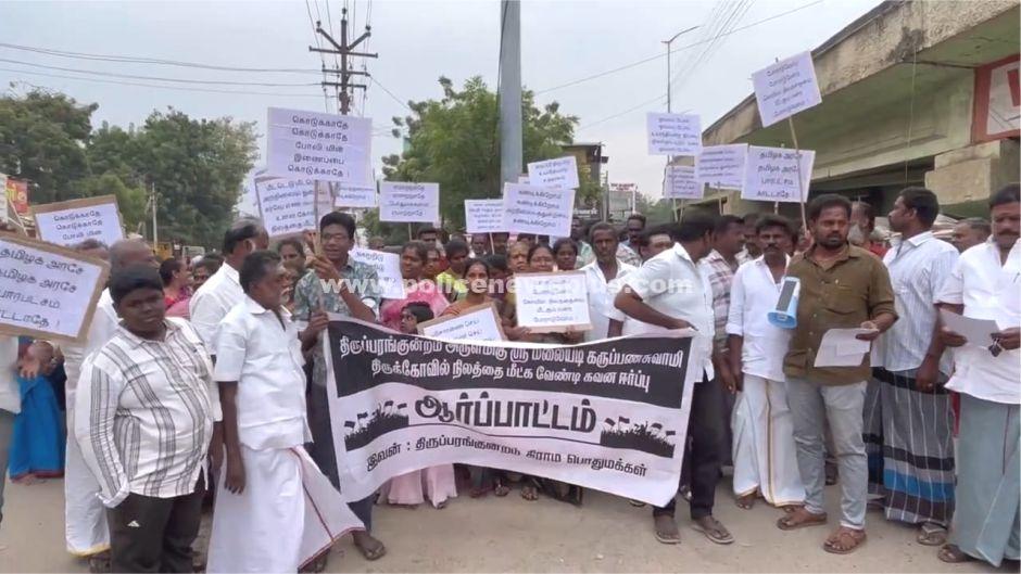 மதுரை : மதுரை திருப்பரங்குன்றம் மலைக்கு பின்புறம் உள்ள பகுதியில், அமைந்துள்ள மலையடி கருப்பசாமி கோவில் நிலத்தை தனி நபர் ஆக்கிரமித்துள்ளதாகவும் உயர் நீதிமன்ற உத்தரவை மீறியும் செயல்பட்டு வருவதாகவும், அதை மீட்க வேண்டி 50-க்கும் மேற்பட்ட பெண்கள் உட்பட பொதுமக்கள் கவன ஈர்ப்பு ஆர்ப்பாட்டத்தில் ஈடுபட்டனர். சுமார் ஒரு மணி நேரம் காவல் நிலையம் அருகே சாலை மறியல் ஆர்ப்பாட்டத்தில் ஈடுபட்டனர் நிலையில் காவல்துறையினர் பொதுமக்களிடம் பேச்சுவார்த்தை நடத்தில் வருவாய்த்துறை மற்றும் அறநிலைத்துறையிடம் பேசி உடனடியாக சரி செய்து நடவடிக்கை எடுக்கப்படும் உத்தரவாதம் அளித்த நிலையில் போராட்டத்தை கைவிட்டனர். இது குறித்து, போராட்டத்தில் வெற்றிவேல் கூறுகையில் ஈடுபட்ட கூறுகையில் இந்த மலைஅடி கருப்பண்ணசாமி திருக்கோவில் பல நூறு ஆண்டுகளாக உள்ளது.