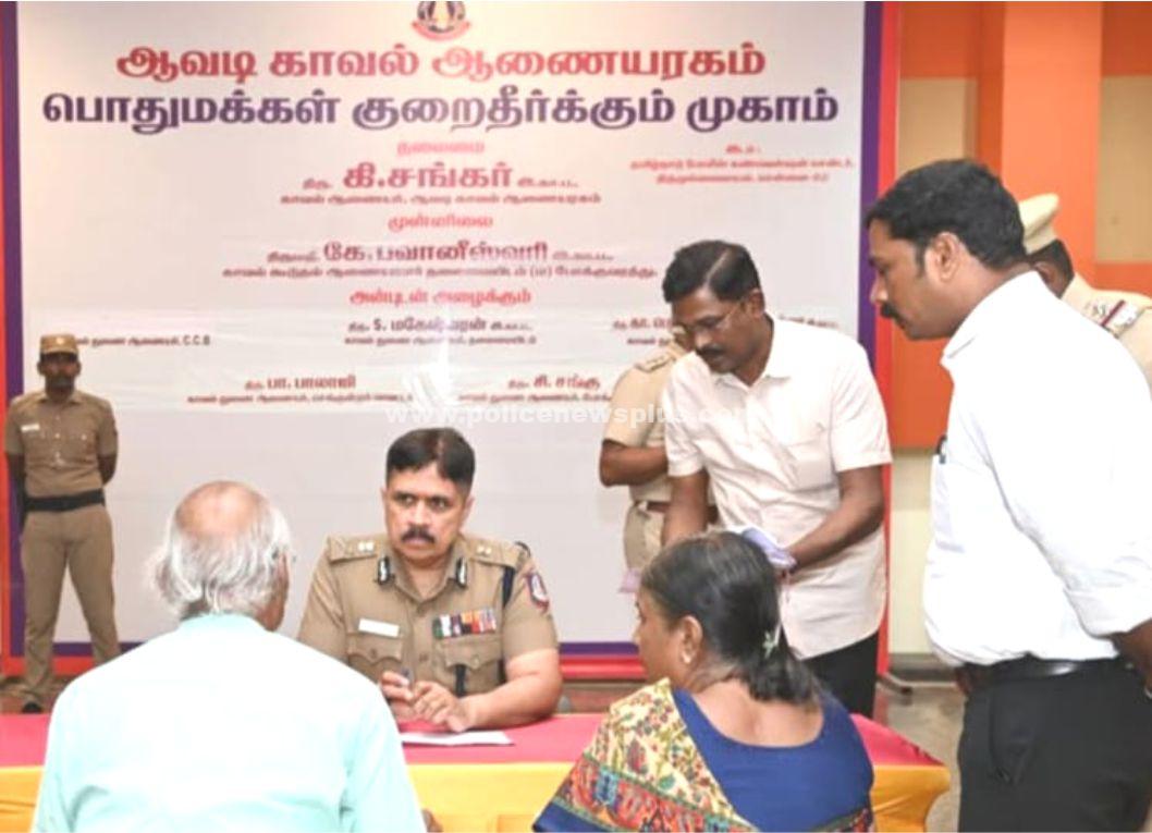 திருவள்ளூர்: ஆவடி காவல் ஆணையரகத்தில் நடைபெற்ற பொதுமக்கள் குறைதீர்க்கும் முகாமில், ஆவடி காவல் ஆணையாளர் திரு.கி.சங்கர் இ.கா.ப அவர்கள் பொதுமக்களிடம் குறைகளை கேட்டறிந்து புகார் மனுக்களை பெற்றும், ஏற்கனவே பெறப்பட்டு முடிக்கப்பட்ட புகார் மனுக்களின் மீதான நடவடிக்கைகள் குறித்து கேட்டறிந்தும், 56 புகார் மனுக்கள் மீது உரிய நடவடிக்கை மேற்கொள்ள உத்தரவிட்டார்கள்.
