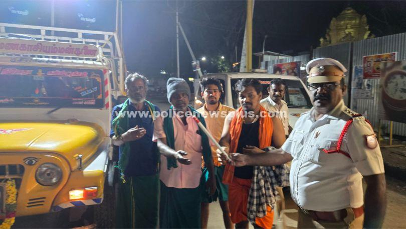 திண்டுக்கல் : தேசிய சாலை பாதுகாப்பு மாதம் ஜனவரி 1 முதல் 31 வரை கடைபிடிக்கப்படுகிறது. இதைத்தொடர்ந்து S.P.பிரதீப் உத்தரவின் படி ASP. சிபின் மேற்பார்வையில் நகர் போக்குவரத்து காவல் நிலைய ஆய்வாளர் பழனிச்சாமி தலைமையிலான போக்குவரத்து போலீசார் திண்டுக்கல் நகரின் முக்கிய பகுதிகளில் இருசக்கர வாகனத்தில் தலைக்கவசம் அணியாமல் வரும் நபர்களிடம் தலைக்கவசம் அணிவதன் அவசியம் குறித்தும், கார், பேருந்து, சரக்கு வாகனம், வேன் உள்ளிட்ட வாகனங்களின் முகப்பு விளக்குகளில் கருப்பு ஸ்டிக்கர் ஒட்டியும், சீட் பெல்ட் அணிய வேண்டும் என்று அறிவுறுத்தி விழிப்புணர்வு ஏற்படுத்தினர். மேலும் பழனி முருகன் கோவிலுக்கு பாதயாத்திரை செல்லும் பக்தர்களுக்கு ஒளிரும் குச்சி மற்றும் ஒளிரும் பட்டை வழங்கி இரவில் பாதுகாப்பான பயணத்தை மேற்கொள்ள அறிவுரை வழங்கினார்.