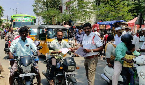 திண்டுக்கல் : திண்டுக்கல் மாவட்டம் பழனியில் வாகனம் ஓட்டுபவர்களுக்கு, போக்குவரத்து விதிமீறலும், அபராதமும், பற்றிய விழிப்புணர்வு நோட்டீஸை நகர் போக்குவரத்து காவல் ஆய்வாளர்.மஹேந்திரன் பொதுமக்களுக்கு வழங்கி விழிப்புணர்வு ஏற்படுத்தினார்.