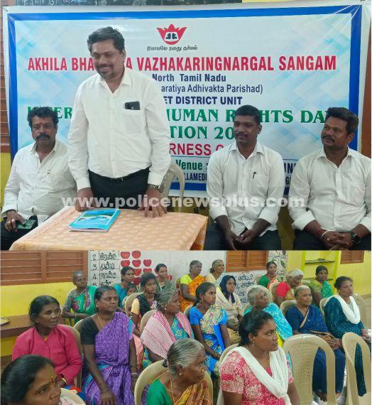 செங்கல்பட்டு: செங்கல்பட்டு அடுத்த அம்மணம்பாக்கம் கிராமத்தில் அமைந்துள்ள கொள்ளமேடு பகுதியில் வாசிக்கும் இருளர் சமுதாய மக்களுக்கு சட்ட விழிப்புணர்வு முகாம் நடைபெற்றது. இதில் பெண்களுக்கு எதிரான குடும்ப வன்கொடுமை சட்டம், அடிப்படை உரிமையியல் சட்டம் மற்றும் போக்சோ சட்டம் குறித்து விழிப்புணர்வு அந்தப் பகுதியில் வாழும் மக்களுக்கு சட்டம் பற்றிய விழிப்புணர்வு எடுத்துரைக்கப்பட்டது. இந்த பகுதியில் வாசிக்கும் மக்கள் பலர் கலந்து கொண்டனர் மேலும் இந்த நிகழ்வானது மாவட்ட துணை தலைவர் ஸ்ரீதர் தலைமையில் நடைபெற்றது. இந்நிகழ்வில் மாவட்ட செயலாளர் பாபு முன்னிலை வகித்தார். வட்டத் தலைவர் தீனதயாளன் அனைவரையும் வரவேற்று பேசினார் பின்னர் வட்டசெயலாளர் முரளி நன்றி