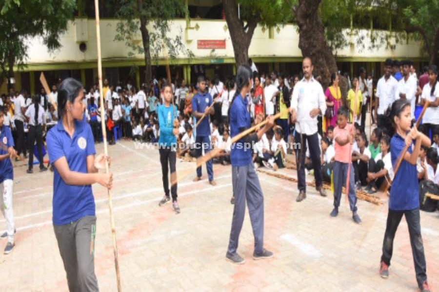 மதுரை : மதுரை சேதுபதி மேல்நிலைப்பள்ளியில், தமிழ்நாடு சிலம்பாட்ட கழகம் சார்பில் 35 மாவட்ட சிலம்பம் போட்டி நடைபெற்றது. ஆயிரக்கணக்கான மாணவ மாணவிகள் குடும்பத்தாருடன் பங்கேற்றனர். இதில், விளையாட்டு போட்டியில் கலந்து கொண்ட மாணவ, மாணவிகள் தங்களது திறமையை வெளிப்படுத்தினர். சிலம்பம், சுருவீச்சு, இரட்டை கம்பு, வீச்சு வேல் கம்பு வீச்சு, மான் கொம்பு போன்ற தற்காப்பு கலைகளை செய்து காட்டினர். வெற்றி பெற்ற மாணவ மாணவி வெற்றி பெற்ற மாணவ மாணவிகளுக்கு தமிழ்நாடு சிலம்பாட்டக் கழக பொறுப்பாளர் கணேசன், மாவட்ட செயலாளர் எஸ். எ .மணி, மாணவரணி செயலாளர் முத்துமாரி மற்றும் மகளிர் அணி சந்திரா, இளைஞர் அணி வடிவேல் மாணவ மாணவிகளை பாராட்டி சான்றிதழ் பதக்கங்கள் தந்து வாழ்த்துக்களை தெரிவித்தார்கள்.
