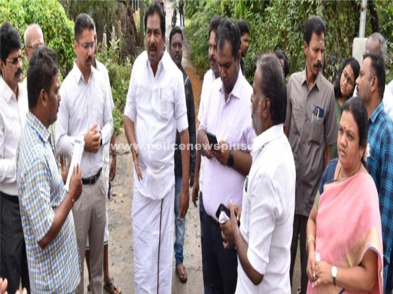 மதுரை : மாண்புமிகு வணிகவரி மற்றும் பதிவு துறை அமைச்சர் திரு. பி. மூர்த்தி, மதுரை கிழக்கு சட்டமன்ற தொகுதிக்கு உட்பட்ட உத்தங்குடி லேக் ஏரியா பகுதியில் மழை நீர் தேங்கிய பகுதிகளை பார்வையிட்டு ஆய்வு செய்து, உரிய நடவடிக்கை மேற்கொள்ள அலுவலர்களுக்கு உத்தரவிட்டார். மதுரை மாவட்ட ஆட்சித் தலைவர் திரு.அனிஷ் சேகர், அவர்கள், மதுரை மாநகராட்சி மேயர்,மதுரை மாநகராட்சி ஆணையாளர் அவர்கள் உடன் உள்ளனர்.