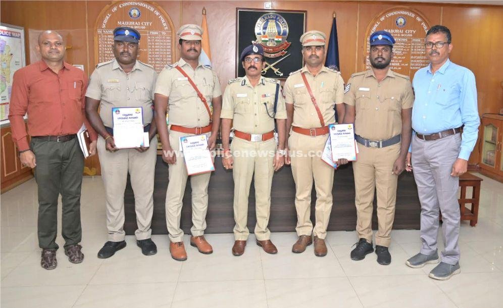 மதுரை : மதுரை மாநகர் கீரைத்துறை மற்றும் எஸ்.எஸ் காலனி காவல் நிலைய எல்லைகளுக்கு உட்பட்ட பகுதிகளில் 123 கிலோ கஞ்சா பறிமுதல் செய்யப்பட்ட வழக்குகளில் குற்றவாளிகளை கைது செய்ய உறுதுணையாக இருந்த மதுரை மாநகர காவல்துறையினரின் சீரிய பணியை பாராட்டும் விதமாக மதுரை மாநகர காவல் ஆணையர் முனைவர் ஜெ. லோகநாதன் இ.கா.ப., அவர்கள் நேரில் அழைத்து தனது வாழ்த்துக்களை கூறி மேலும் பணி சிறக்கும் வகையில் பாராட்டு சான்றிதழ் மற்றும் வெகுமதி வழங்கி சிறப்பித்தார்.