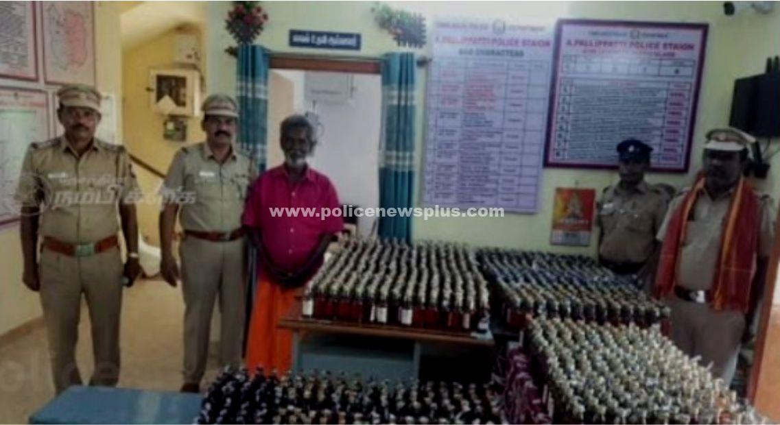 சட்ட விரோதமாக மது பாட்டில்கள் பதுக்கி விற்பனை செய்த நபர் கைது 1,081 மது பாட்டில்கள் பறிமுதல் தர்மபுரி மாவட்டம் அ.பள்ளிப்பட்டி காவல் நிலைய எல்லைக்குட்பட்ட பகுதியான மாரியம்பட்டி பகுதியைச் சேர்ந்த ராதா(55). என்பவர் அரசு டாஸ்மாக் கடையில் மது பாட்டில்களை மொத்தமாக வாங்கி சட்ட விரோதமாக 24 மணி நேரமும் கூடுதல் விலைக்கு விற்பனை செய்துள்ளார். இதையறிந்த அ.பள்ளிப்பட்டி காவல் நிலைய உதவி ஆய்வாளர் திரு.கெய்க்வாட் அவர்கள் ராதாவை கையும் களவுமாக பிடித்து கைது செய்தார். மேலும் அவர் வீட்டில் பதுக்கி வைக்கப்பட்டிருந்த சுமார் 1.50 லட்சம் மதிப்பிலான 1,081 மது பாட்டில்கள் பறிமுதல் செய்தனர்.