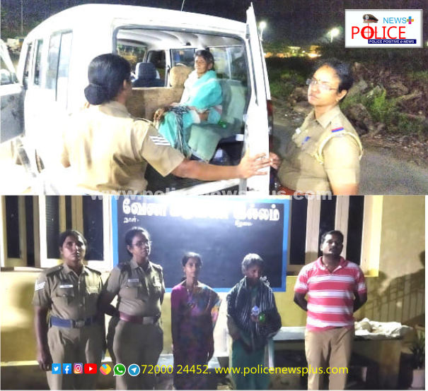 பேருந்து நிறுத்தத்தில் தனியாக நின்று கொண்டிருந்த மனநலம் பாதிக்கப்பட்ட வயதான மூதாட்டியை பத்திரமாக மீட்ட அனைத்து மகளிர் காவல் நிலைய உதவி ஆய்வாளர் திருமதி.விஜயலட்சுமி, தலைமைக் காவலர் திருமதி.பார்வதி,