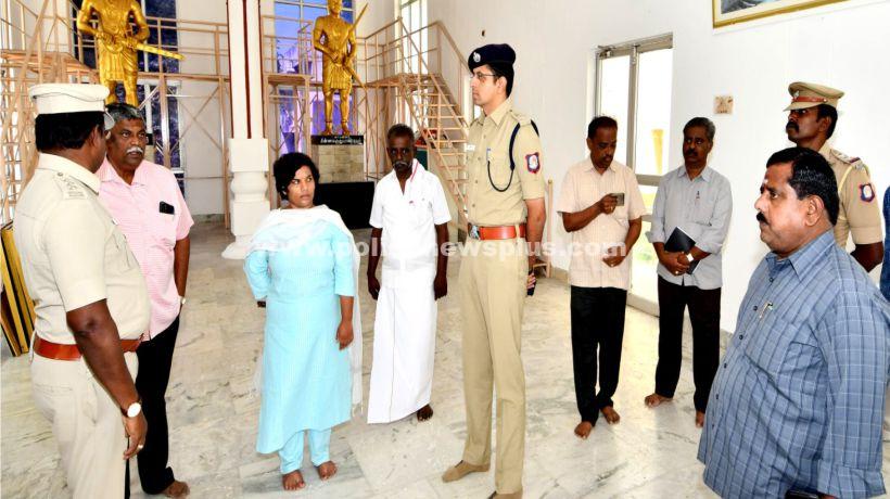 சிவகங்கை : சிவகங்கை மாவட்டம், திருப்பத்தூரில் சுதந்திரப் போராட்ட வீரர்களான மாமன்னர்கள் மருதுபாண்டியர்களின் 222வது நினைவு நாள் விழா வரும் அக், 24 ஆம் தேதி அரசு விழாவாக நடைபெற உள்ளது. அதற்கான முன்னேற்பாட்டு பணிகளை ஆய்வு செய்யும் பொருட்டு சிவகங்கை மாவட்ட ஆட்சியர் ஆஷா அஜீத் சிவகங்கை மாவட்ட காவல் கண்காணிப்பாளர் அரவிந்த், தேவகோட்டை வருவாய் கோட்டாட்சியர் பால்துரை ஆகியோர் ஆய்வு மேற்கொண்டனர். இந்த ஆய்வின் போது திருப்பத்தூர் நகர் காவல் துணை கண்காணிப்பாளர் ஆத்மநாதனிடம் பாதுகாப்பு பணிகள் குறித்து கேட்டறிந்தார்.