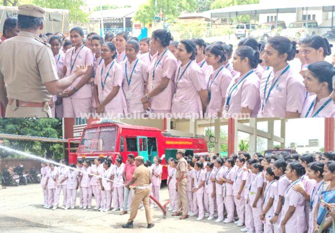 மதுரை: மதுரை மாவட்ட ஆட்சியர் அலுவலகத்தில் , தல்லாகுளம் தீயணைப்பு துறை மற்றும் ரெட் கிராஸ் சார்பில் தனியார் செவிலியர்கள் பயிற்சி பெறும் மாணவிகளுக்கு தீத்தடுப்பு ஒத்திகை பயிற்சி அளிப்பது குறித்து தீயணைப்பு வீரர்கள் செய்து காட்டினர்.