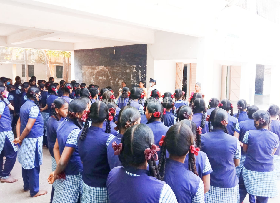 திண்டுக்கல் : 14.03.2022 திண்டுக்கல் மாவட்ட காவல் கண்காணிப்பாளர் திரு.V.R.ஸ்ரீனிவாசன் அவர்களின் அறிவுறுத்தலின் படி காவல் நிலைய எல்லைக்குட்பட்ட பகுதிகளில் இன்று பள்ளி மாணவ, மாணவிகளிடையே பெண்கள் பாதுகாப்பு குறித்தும், பெண்கள் மற்றும் குழந்தைகளுக்கு எதிராக நடக்கும் குற்றங்கள் குறித்தும், சாலை பாதுகாப்பு மற்றும் தலைக்கவசம் அணிவதன் அவசியம் குறித்து எடுத்துக்கூறி விழிப்புணர்வு ஏற்படுத்தி வரும் திண்டுக்கல் மாவட்ட காவல்துறையினர்.