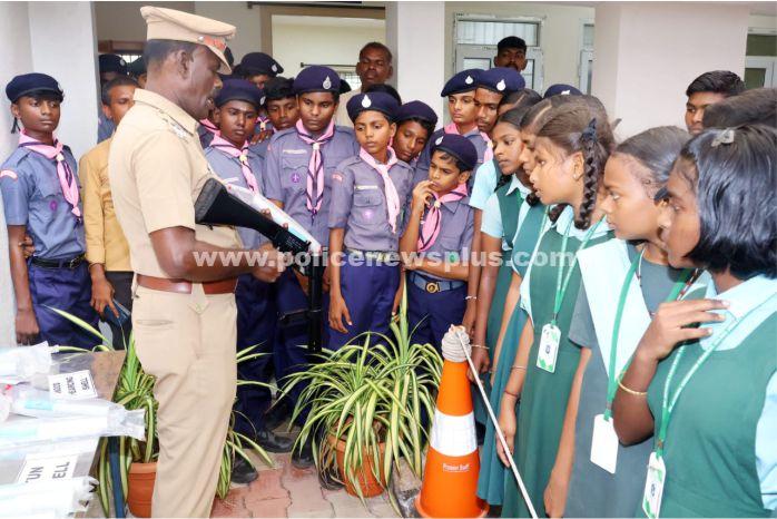 மாணவ மாணவியருக்கு காவல்துறையின் ஆயுத கண்காட்சி