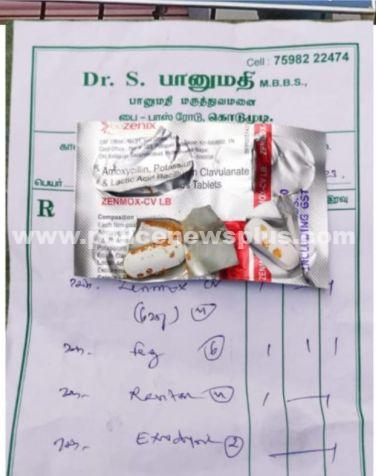 ஈரோடு : ஈரோடு மாவட்டம், கொடுமுடியில் செயல்பட்டு வரும் பானுமதி மருத்துவமனையில் மருத்துவர் எஸ். பானுமதி அவர்களிடம் சிகிச்சைக்காக சென்ற வசந்தா ( வயது 31 ). என்ற பெண்மணிக்கு சிகிச்சைக்காக டாக்டர் எஸ் பானுமதி அவர்களால் பெண்ணுக்கு நிவாரண மாத்திரைகள் வழங்கப்பட்டது. அதில் இரவு நேரத்திற்கு உரிய ஒருவேளைக்குரிய மாத்திரையை அவர் உன்றுவிட்டார். அந்த பெண்ணுக்கு இரவு முழுவதும் உடல் சார்ந்த தொந்தரவுகள் அதிகரித்துள்ளது. காலை வேலைக்கு உரிய மாத்திரையும் சாப்பிட்டால் உடல் உபாதை சரியாகிவிடும் என்று பெண் மாத்திரையை சாப்பிட எடுத்தபோது மாத்திரை அட்டைக்குள் புழு பூச்சிகள் இருந்ததால் பெண் நோயாளி வசந்தா அதிர்ச்சி அடைந்தார். அவர் அளித்த வாக்குமூலத்தின் பெயரில் இது போன்று எத்தனை பெண்களுக்கு இந்த மருத்துவர் இந்த தரமற்ற மாத்திரையை வழங்கி உள்ளார். என்பது தெரியவில்லை. அதேபோல் தமிழ்நாடு மற்றும் இந்தியா முழுவதிலும் இந்த தரமற்ற மாத்திரை எத்தனை விற்று உள்ளது, அதை எத்தனை பெண்கள் உபயோகித்து நோய்வாய்ப்பட்டுள்ளார்கள் என்பதும் தெரியவில்லை.