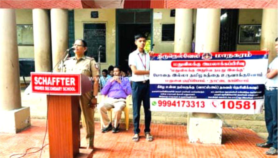 திருநெல்வேலி: திருநெல்வேலி மாநகர மதுவிலக்கு அமலாக்க பிரிவு, மற்றும் மாநகராட்சி சார்பாக (05.02.2025) அன்று திருநெல்வேலி சாஃப்டர் மேல்நிலைப் பள்ளியில், மாநகர மதுவிலக்கு காவல் ஆய்வாளர், இந்திரா தலைமையில் “மதுவிலக்கு அதுவே நமது இலக்கு” என்கின்ற தலைப்பில் போதை இல்லா தமிழகத்தை உருவாக்க, மதுவை ஒழிக்கவும் நாட்டை காக்கவும் பள்ளி தலைமை ஆசிரியர் ஆசிரியர் பெருமக்கள் முன்னிலையில் சுமார் 2200 மாணவர்கள் போதை பொருள் விழிப்புணர்வு உறுதிமொழி ஏற்றுக்கொண்டனர்.