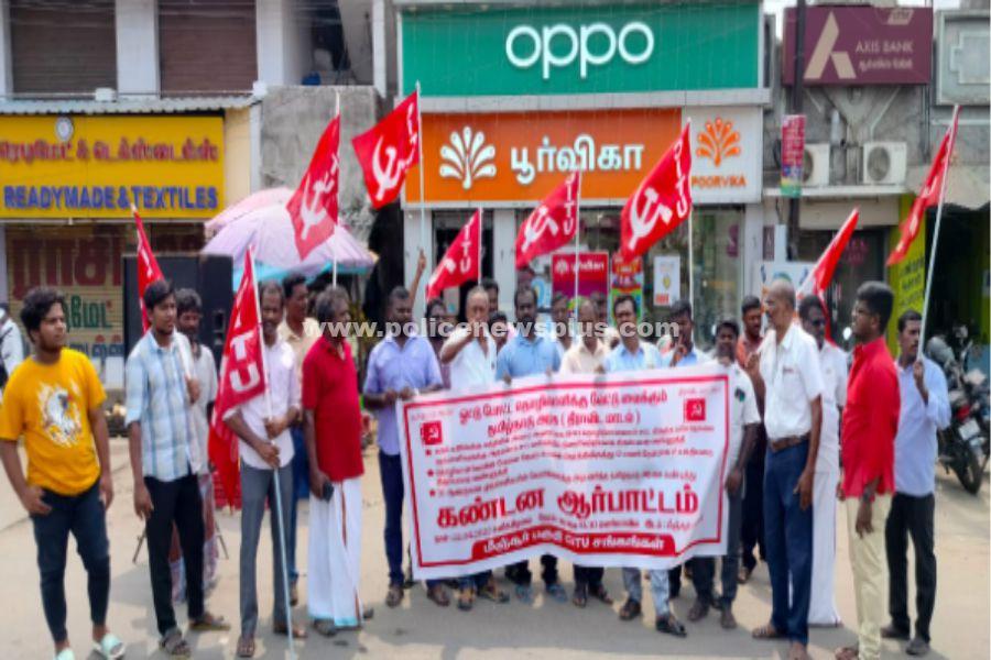 திருவள்ளூர் : திருவள்ளூர் மாவட்டம் மீஞ்சூர் பஜார் பகுதியில் தொழிலாளர்களின் வேலை நேரத்தினை 12 மணி நேரமாக உயர்த்தி மசோதா நிறைவேற்றியதாக தி.மு.க அரசை கண்டித்து சி.ஐ.டி.யு வினர் கண்டன ஆர்பாட்டத்தை நடத்தினர் இந்த ஆர்ப்பாட்டத்திற்கு திருவள்ளூர் மாவட்ட துணைத் தலைவர் விநாயகமூர்த்தி தலைமை வகித்தார், மாநில துணைத்தலைவர் கே.விஜயன் கலந்து கொண்டு கண்டன உரையாற்றினார், தொழிலாளர்களின் வேலை நேரத்தில் 12 மணி நேரமாக உயர்த்திய திமுக அரசு வாய் வழி மசோதாவை நிறைவேற்றியுள்ளது அதனை கண்டிக்கின்ற வகையில் விடுதலை சிறுத்தைகள் கட்சி மற்றும் சிஐடியு வினர் சட்டசபையில் வெளிநடப்பு செய்து எதிர்ப்பு தெரிவிக்கின்ற வகையில் ஆங்காங்கே கண்டன ஆர்ப்பாட்டங்களை நடத்தி வருகின்றன எனவும். அதன் தொடர்ச்சியாக இந்த மீஞ்சூர் பஜார் பகுதியில் எங்களுடைய கண்டனத்தை பதிவு செய்துள்ளோம் எனத் தெரிவித்தார், இதில் மாவட்ட இணை செயலாளர் நரேஷ்குமார், உள்ளாட்சி ஊழியர் சங்க மாவட்ட தலைவர் கதிரவேல் , கட்டுமான சங்க மாவட்ட துணைத்தலைவர் ரமேஷ் குமார் , நாலூர் நாகராஜ், உள்ளிட்டு 50க்கும் மேற்பட்ட நிர்வாகிகள் கலந்து கொண்டு கண்டன முழக்கங்களை எழுப்பினர்.