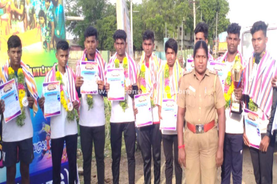 நேற்று கோவாவில் இருந்து சாயல்குடி திரும்பிய கபடி வீரர்களை சாயல்குடி வழிவிடு முருகன் கோவில் அருகில் சாயல்குடி இன்ஸ்பெக்டர் ஜெய்சித்ரா, முன்னாள் பேரூராட்சி துணை தலைவர் காமராஜ், கடலாடி தி.மு.க. முன்னாள் நகர் செயலாளர் முனியசாமி, மாணவர்களின் பெற்றோர்கள், கிராம பொதுமக்கள் மாலை அணிவித்து சால்வை மற்றும் ஆரத்தி எடுத்து வரவேற்றனர். அடுத்த மாதம் நேபாளத்தில் நடைபெறும் கபடி போட்டியில் கலந்துகொள்ள இந்த மாணவர்கள் தகுதி பெற்றுள்ளனர். அவர்களுக்கு தமிழக அரசு நிதி உதவி அளிக்க வேண்டும் என கபடி வீரர்கள், பெற்றோர்கள் கோரிக்கை விடுத்துள்ளனர்.