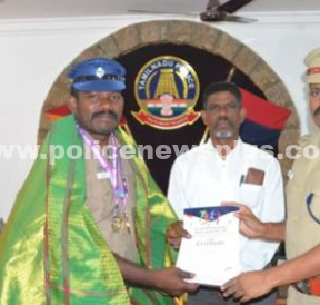 திண்டுக்கல் : திண்டுக்கல் மாவட்ட காவல் அலுவலகத்தில் இன்று மாநில அளவில் நடைபெற்ற 30 வயதிற்கு உட்பட்டோருக்கான வட்டு எறிதல் போட்டியில் முதல் இடமும், ஈட்டி எறிதல் போட்டியில் இரண்டாம் இடமும் பிடித்து வெற்றி பெற்ற விருவீடு காவல் நிலைய முதல்நிலைக் காவலர் திரு.முனீஸ்வரன் அவர்களை மாவட்ட காவல் கண்காணிப்பாளர் திரு.V.R.ஸ்ரீனிவாசன் அவர்கள் நேரில் அழைத்து பொன்னாடை அணிவித்து பாராட்டினார்கள்.
