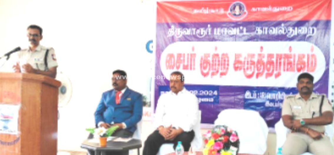 திருவாரூர்: திருவாரூர் மாவட்ட காவல் கண்காணிப்பாளர் திரு.S.ஜெயக்குமார், M.Sc, (Agri)., அவர்கள் அறிவுறுத்தலின் படி, திருவாரூர் மாவட்ட சைபர் கிரைம் காவல்துறையினர் (20.02.2024) மன்னார்குடி ARJ-பொறியியல் கல்லூரியில் ஏற்பாடு செய்த மாபெரும் சைபர் குற்ற கருத்தரங்கில் மாவட்ட காவல் கண்காணிப்பாளர் அவர்கள் கலந்து கொண்டு சைபர் குற்றங்கள் குறித்து மாணவ, மாணவியர்கள் மத்தியில் சிறப்புரையாற்றி, விழிப்புணர்வு ஏற்படுத்தினார்கள். அப்போது கூடுதல் காவல் கண்காணிப்பாளர் திரு.T.ஈஸ்வரன் அவர்கள், மன்னார்குடி உட்கோட்ட துணை காவல் கண்காணிப்பாளர் திரு.A.அஸ்வத் ஆண்டோ ஆரோக்கியராஜ் மற்றும் திருவாரூர் மாவட்ட சைபர் கிரைம் காவல் நிலைய ஆய்வாளர் திருமதி.ஸ்ரீபிரியா மற்றும் சைபர் கிரைம் காவல் நிலைய உதவி ஆய்வாளர் திரு.கணபதி ஆகியோரும் சைபர் குற்றங்கள் குறித்து எடுத்துரைத்தார்கள்.