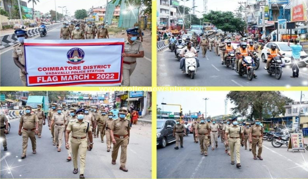 கோவை: கோவை மாவட்டத்தில் நடைபெற உள்ள 2022 உள்ளாட்சி தேர்தலில் பொது மக்கள் ஜனநாயக முறைப்படி எந்தவித அச்சுறுத்தலும் இன்றி பாதுகாப்பாக வாக்களிக்க மாவட்ட காவல் கண்காணிப்பாளர் திரு. செல்வநாகரத்தினம் இ.கா.ப., அவர்களின் தலைமையில் இன்று (16.02.2022) வடவள்ளி காவல் நிலைய பகுதியில் கொடி அணிவகுப்பு நடைபெற்றது. இக்கொடி அணிவகுப்பில் பேரூர் துணை காவல் கண்காணிப்பாளர், ஆய்வாளர்கள் – 06, உதவி ஆய்வாளர்கள்-05, சிறப்பு உதவி ஆய்வாளர்கள்-04, ஆயுதப்படை காவல்துறையினர், சிறப்பு அதிரடி காவல்துறையினர் மற்றும் ஊர்க்காவல் படையினர் என சுமார் 85 காவல்துறையினர் கலந்து கொண்டனர்.