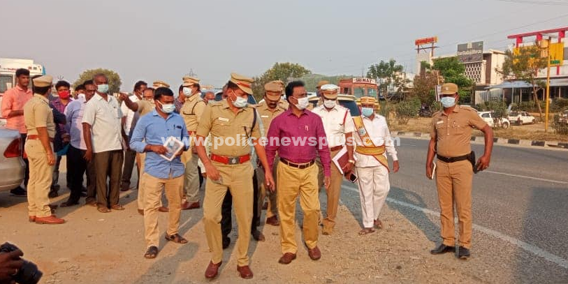 திண்டுக்கல்: 15.03.2022 திண்டுக்கல் மாவட்டம் தாடிக்கொம்பு காவல் நிலைய எல்லைக்குட்பட்ட அஞ்சலி ரவுண்டானா பகுதியில் இன்று சாலை விபத்துக்கள் நடைபெறாமல் தடுக்கும் நடவடிக்கைகள் குறித்து மாவட்ட ஆட்சியர் திரு.விசாகன், இ.ஆ.ப, அவர்களும், மாவட்ட காவல் கண்காணிப்பாளர் திரு.V.R.ஸ்ரீனிவாசன் அவர்களும் ஆய்வு மேற்கொண்டார்கள். இந்நிகழ்ச்சியில் மாவட்ட சைபர் கிரைம் காவல் நிலைய கூடுதல் காவல் கண்காணிப்பாளர் திரு.சந்திரன் அவர்களும் போக்குவரத்து காவல்துறையினர், நெடுஞ்சாலைத் துறையினர், மற்றும் மாவட்ட போக்குவரத்து அலுவலக அதிகாரிகள் ஆகியோர் கலந்து கொண்டார்கள்.