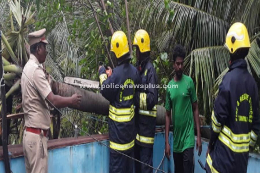 உடனடியாக பொன்னேரி தீயணைப்பு நிலையத்திற்கு தகவல் கொடுத்ததின் பேரில் தீயணைப்பு துறை அதிகாரி சம்பத் தலைமையில் தீயணைப்பு துறையினர் விரைந்து வந்து மரம் அறுக்கும் இயந்திரத்தினால் மரங்களை அறுத்து அப்புறப்படுத்தி 3 மணி நேர போராட்டத்திற்கு பிறகு பத்திரமாக ஐந்து நபர்களை மீட்டனர். இதேபோன்று அருகில் இயேசு குமார் வீட்டில் மேல் தளத்தில் பனைமரம் வேரோடு சரிந்து விழுந்தது தீயணைப்பு துறையினர் வெட்டி அப்புறப்படுத்தினர் . பழவேற்காடு,கூனங்குப்பம், குளத்து மேடு, சோமஞ்சேரி, ஏலியம்பேடு,, கனகம் பாக்கம், பகுதிகளில் புயலினால் இடிந்து விழுந்த வீடுகள் மற்றும் சேதமான வீடுகளை பொன்னேரி MLA திரு. துரை சந்திரசேகர், தாசில்தார் செல்வகுமார் பார்வையிட்டு, உணவு மற்றும் உடைகளை வழங்கினர்.